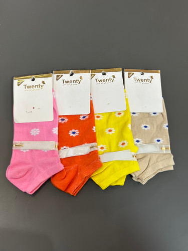 جوراب نخی پنبه طرح گلدار بدون ساق